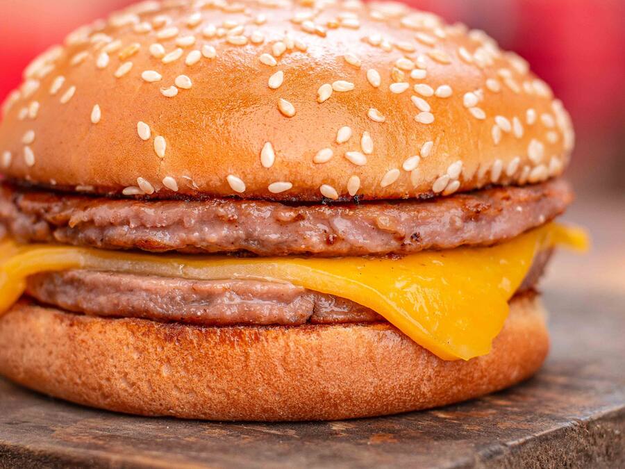 Pão pequeno 65 gr2 bifes de hamburguer 56gr 1 fatia de queijo cheddarCreme cheddar